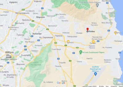 The land lies in the slope of Pendelikon mountain within the model settlement of Dioni with a beautiful view to the Mesogeia Plain . It is within a 15 minute drive from Attiki odos freeway, Pallini metro station, Rafina sea port and Eleftherios Venizelos International Airport .