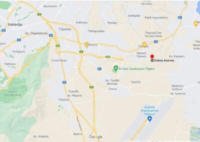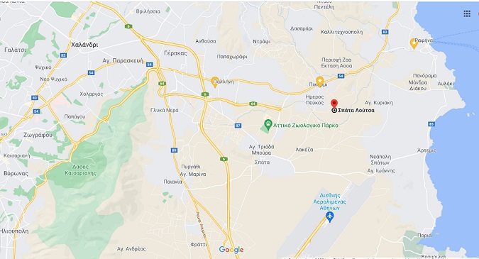 It lies on the Mesogeia Plain in Spata-Artemida Municipality between Semeli and Koimiseos Theotokou streets in a location called Imeros Pefkos.